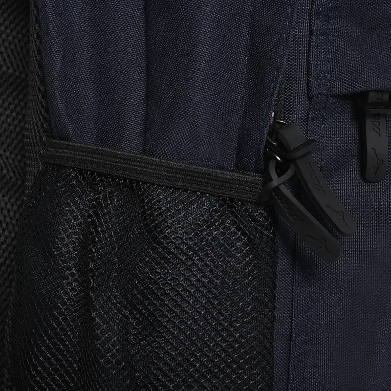 Mochila construída um tecido resistente e com aspecto rajado, possui bolso frontal para armazenar pequenos objetos e divisória interna no bolso principal. Mochila com bolso principal espaçoso, alças de ombro ajustáveis e confeccionadas com acolchoamento um mesh respirável para máximo conforto. Logo Mizuno um tamanho grande aplicado na parte frontal. Medidas: 45cm x 30cm x 15cm - 20 litros - Composição: 100% Poliéster